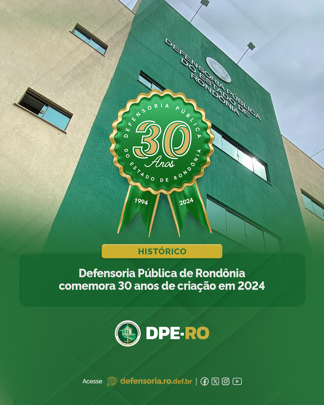 “São 30 anos de muita história, que representam a luta de pessoas comprometidas com a efetivação dos direitos e com a promoção da cidadania daqueles que mais precisam. Gostaria de parabenizar a todas e todos que direta e indiretamente fizeram e fazem a instituição Defensoria Pública de Rondônia como ela é hoje”, finaliza o Defensor Público-Geral.