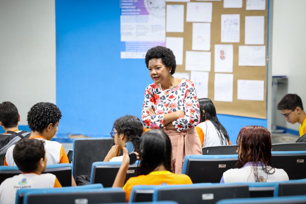 Na manhã desta quinta-feira (24), a Defensoria Pública do Estado do Ceará (DPCE), em parceria inédita com o Supremo Tribunal Federal (STF), promoveu manhã de diálogo enriquecedor sobre direitos e cidadania e temas relevantes para a juventude. A edição especial do projeto “Minha Escola Ensina Direitos” se uniu ao projeto “STF na Escola” e foi realizada na Escola Municipal de Tempo Integral Laís Rodrigues de Almeida, localizada no bairro Curió, e na Escola Municipal Professora Fernanda Maria de Alencar Colares, na Lagoa Redonda.