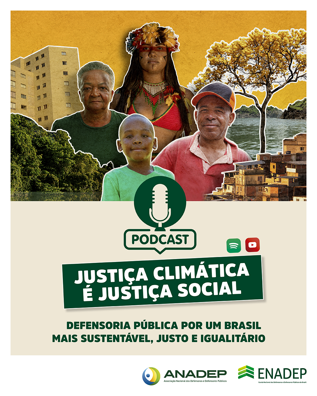 O podcast “Justiça Climática é Justiça Social” estará disponível no Spotify e no canal da ANADEP no YouTube.
