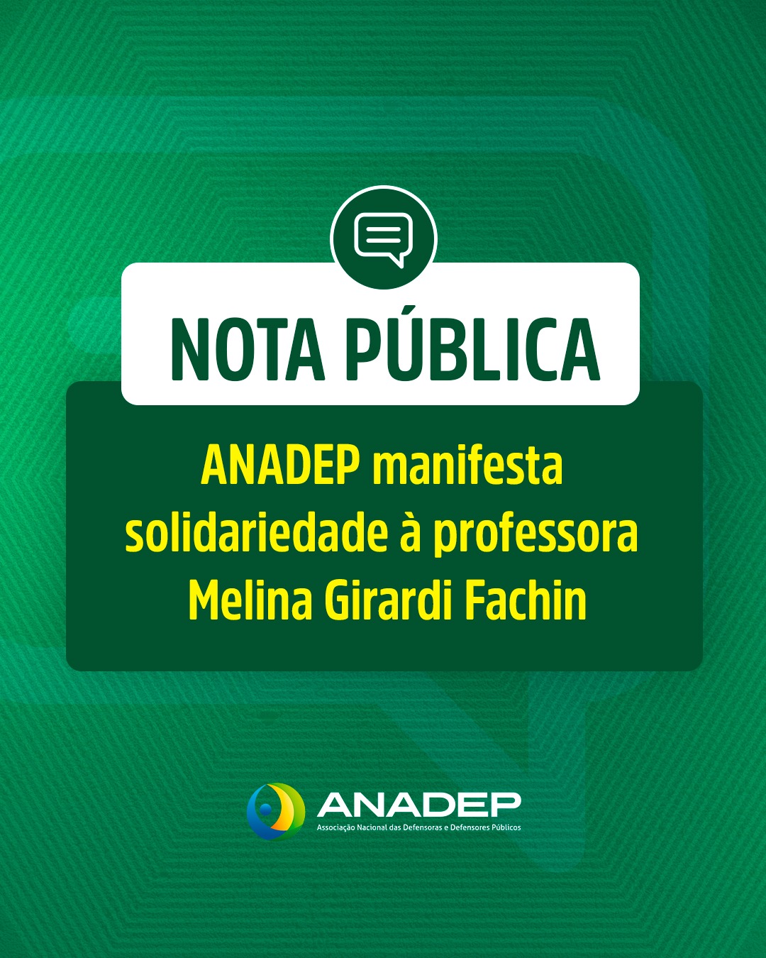 Enquanto defensoras e defensores públicos, cuja missão constitucional (art. 134 da CF/88) é a promoção dos direitos humanos, da justiça social e da defesa do regime democrático, manifestamos nossa solidariedade à professora Dra. Melina Girardi Fachin e, ao mesmo tempo, à sociedade reafirmamos nosso compromisso permanente com a construção de uma democracia inclusiva, plural e comprometida com a dignidade humanas.