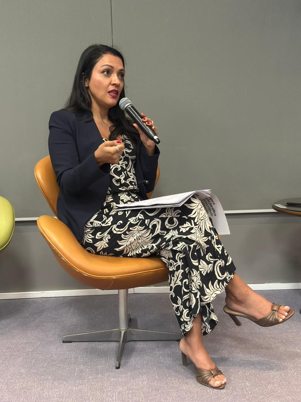 Fernanda Fernandes falou da satisfação da ANADEP em apoiar e participar do lançamento de um material tão relevante para a atuação jurídica; "Este guia é uma ferramenta essencial para que defensoras e defensores públicos possam combater a desinformação climática e fortalecer a defesa dos direitos dos grupos vulneráveis, que são os mais afetados pela emergência climática e pela falta de informação fidedigna".
