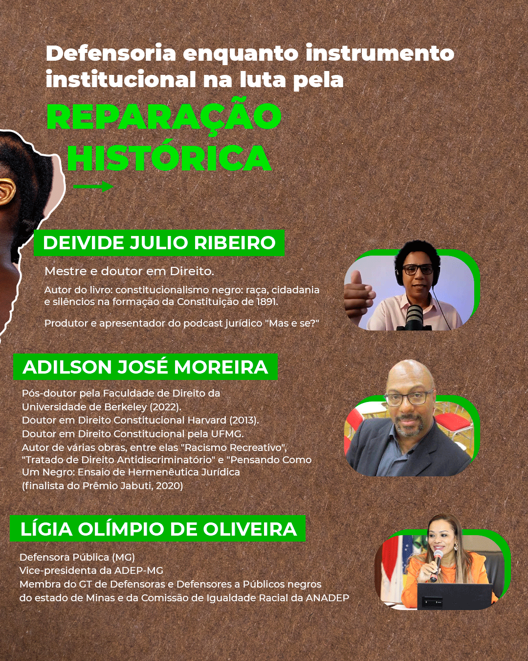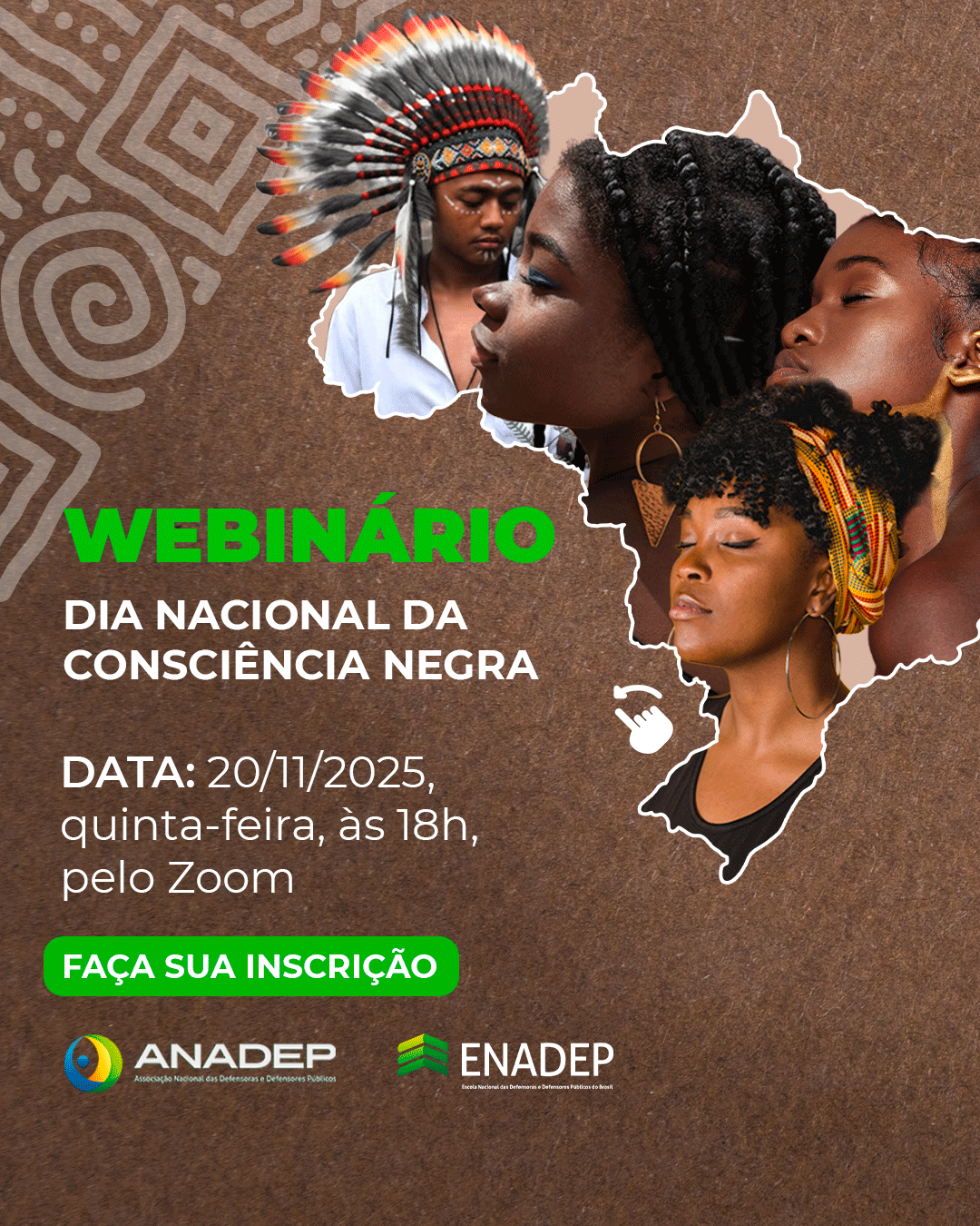 A Escola Nacional das Defensoras e Defensores Públicos do Brasil (ENADEP) realizará, no Dia Nacional da Consciência Negra, 20 de novembro, um webinário com foco no debate sobre raça, na atuação estratégica da Defensoria Pública e nos desafios persistentes no acesso à justiça enfrentados pela população negra.