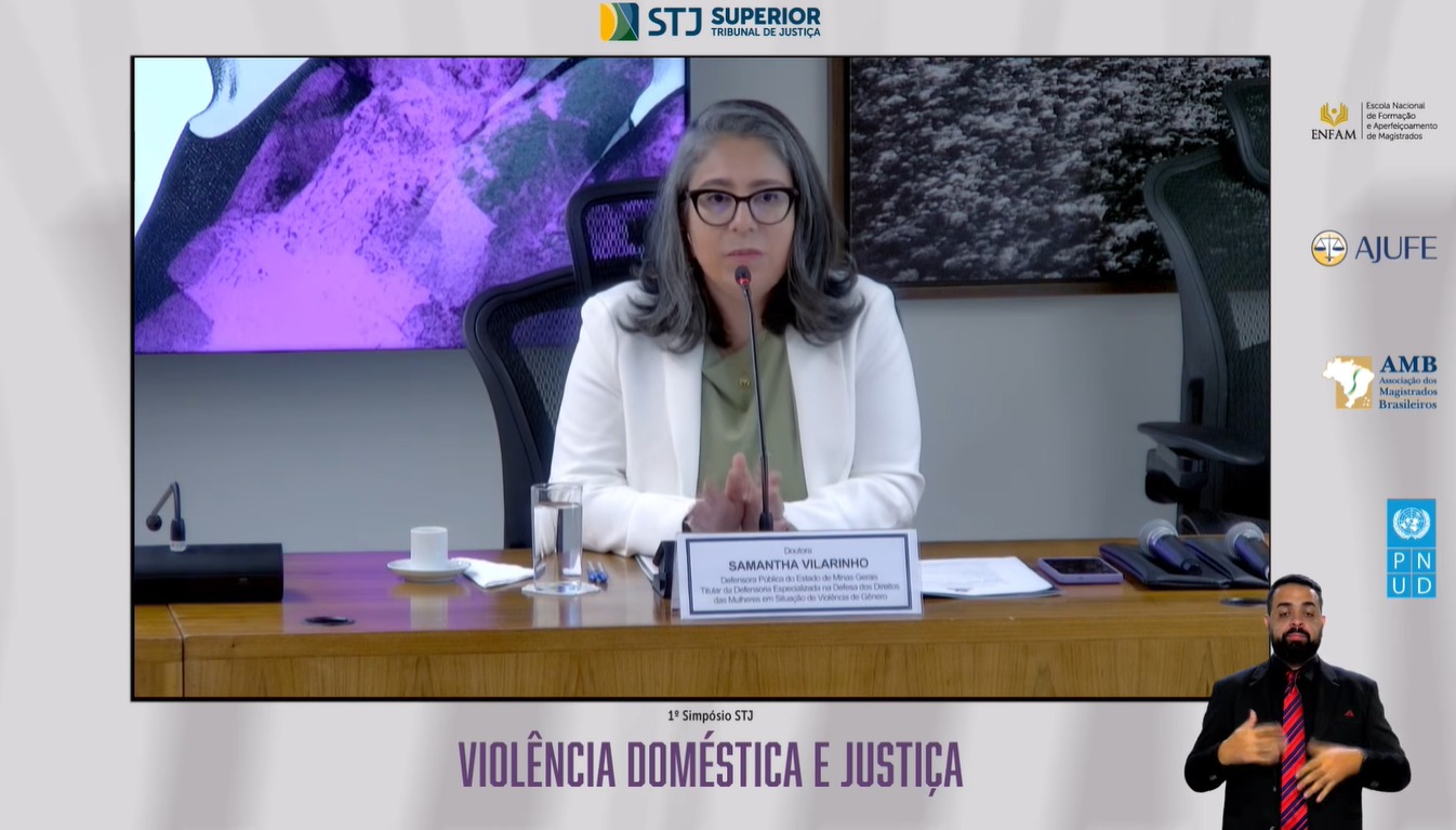A defensora pública Samantha Vilarinho, titular da Defensoria Especializada de Minas Gerais (NUDEM-BH), palestrou sobre o tema “Perspectivas interdisciplinares no enfrentamento à violência doméstica”. Sob a presidência do ministro Marco Buzzi, Samantha Vilarinho compartilhou a tribuna com Francisco Tojal, juiz do Tribunal de Justiça de Pernambuco. Em sua fala, a defensora destacou a importância de um olhar sensível e multidisciplinar no acolhimento das vítimas, reforçando a atuação técnica e humana que as defensoras públicas desempenham em todo o país.