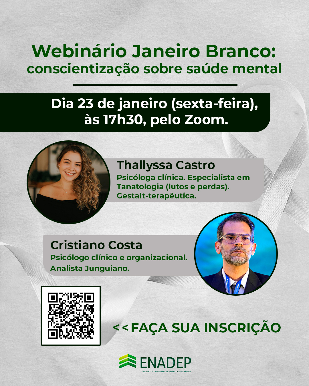 Janeiro branco: webinário da ENADEP dialóga sobre o "Fortalecimento da Saúde Mental nas Instituições"