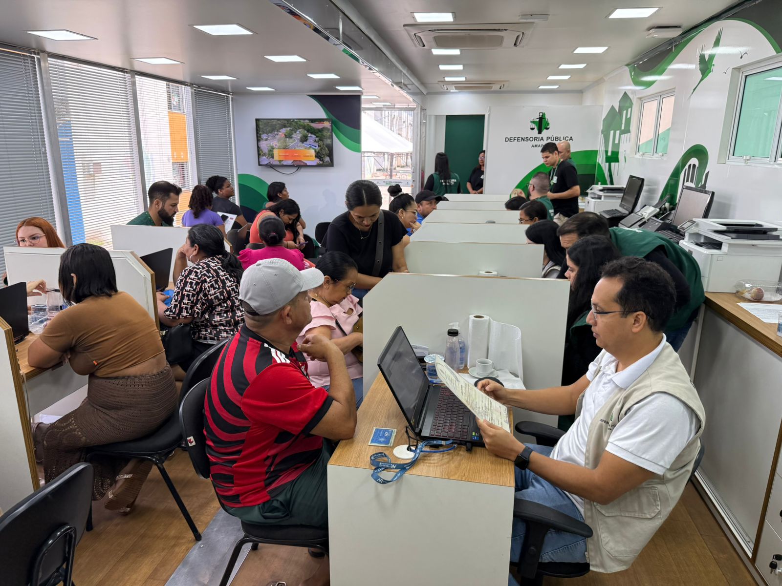 Durante as ações itinerantes da Carreta, são oferecidos todos os serviços rotineiros da Defensoria Pública, de forma integral e gratuita.