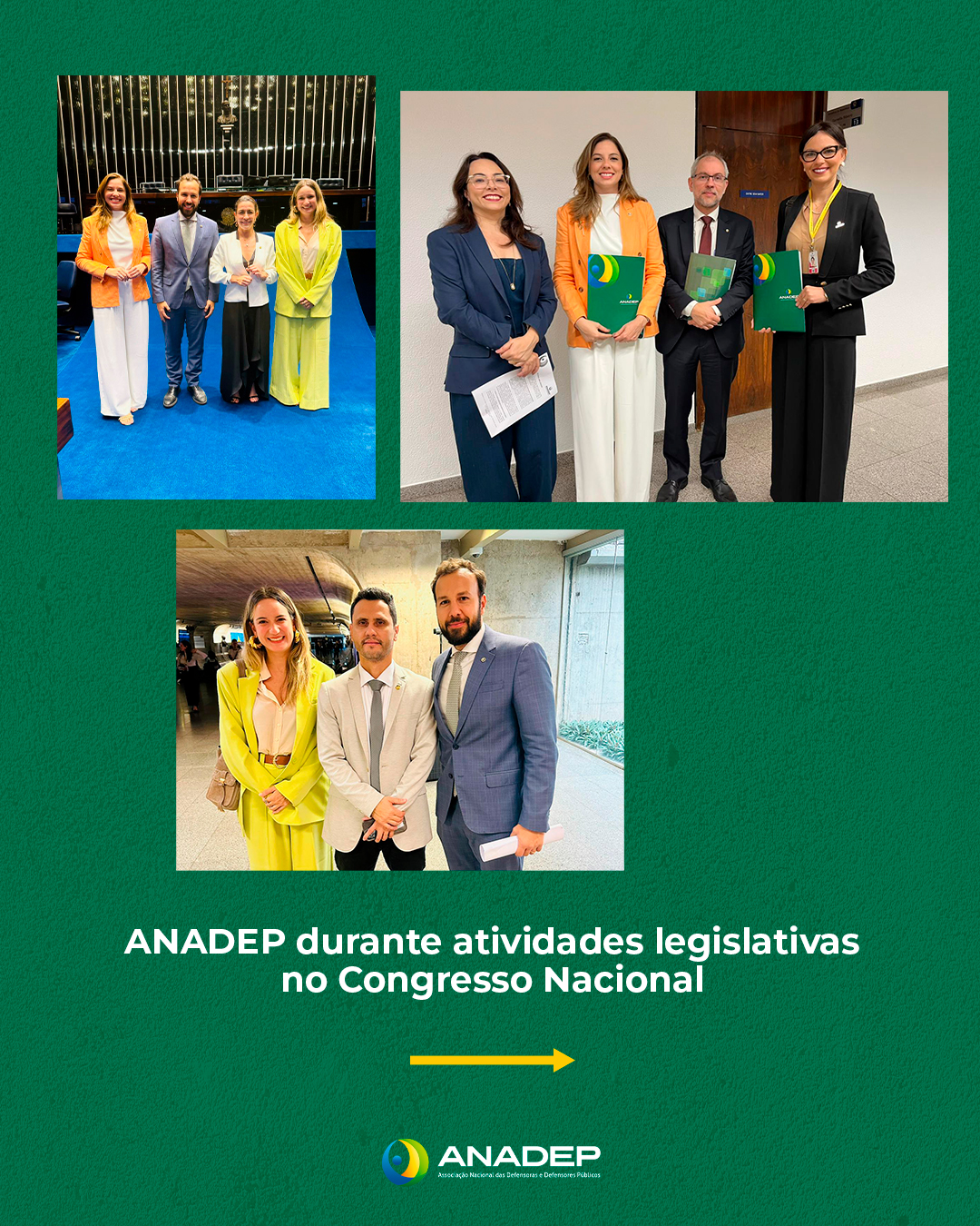 O trabalho legislativo foi liderado pela presidenta da ANADEP, Fernanda Fernandes, com apoio da vice-presidenta jurídico-legislativa e presidenta da ADPEC, Kelviane Barros; do vice-presidente administrativo e presidente da ADEP-MG, Rômulo Carvalho; do primeiro secretário e presidente da ADPERJ, Rômulo Araújo; da conselheira fiscal e presidenta da ADPETO, Karla Nogueira; e da diretora de comunicação e presidenta da APADEP, Jordana Rolim.