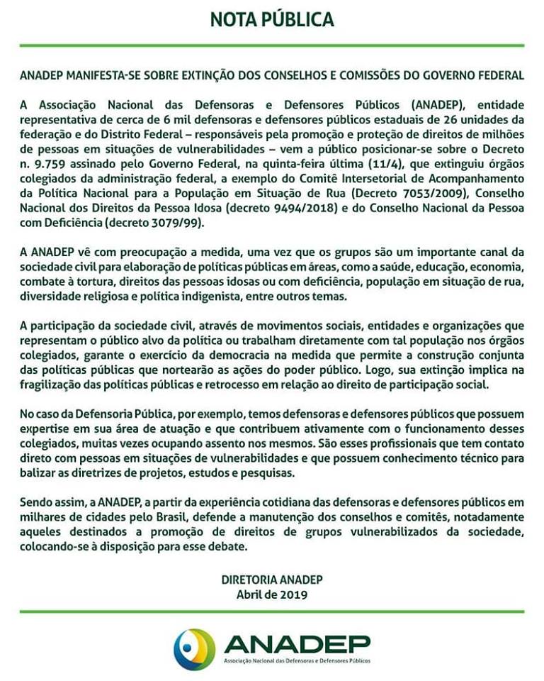 NOTA PÚBLICA: Extinção dos Conselhos e Comissões do Governo Federal
