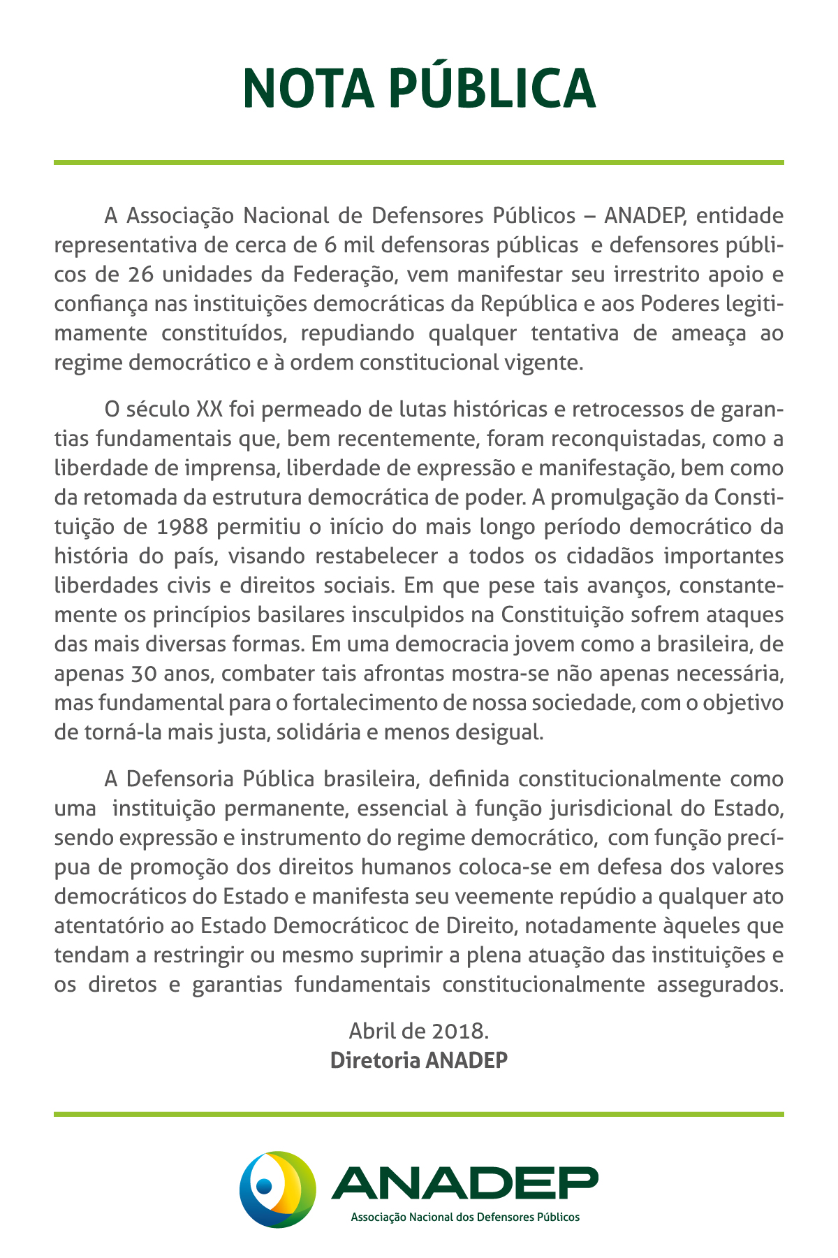 NOTA PÚBLICA: ANADEP a em apoio à democracia