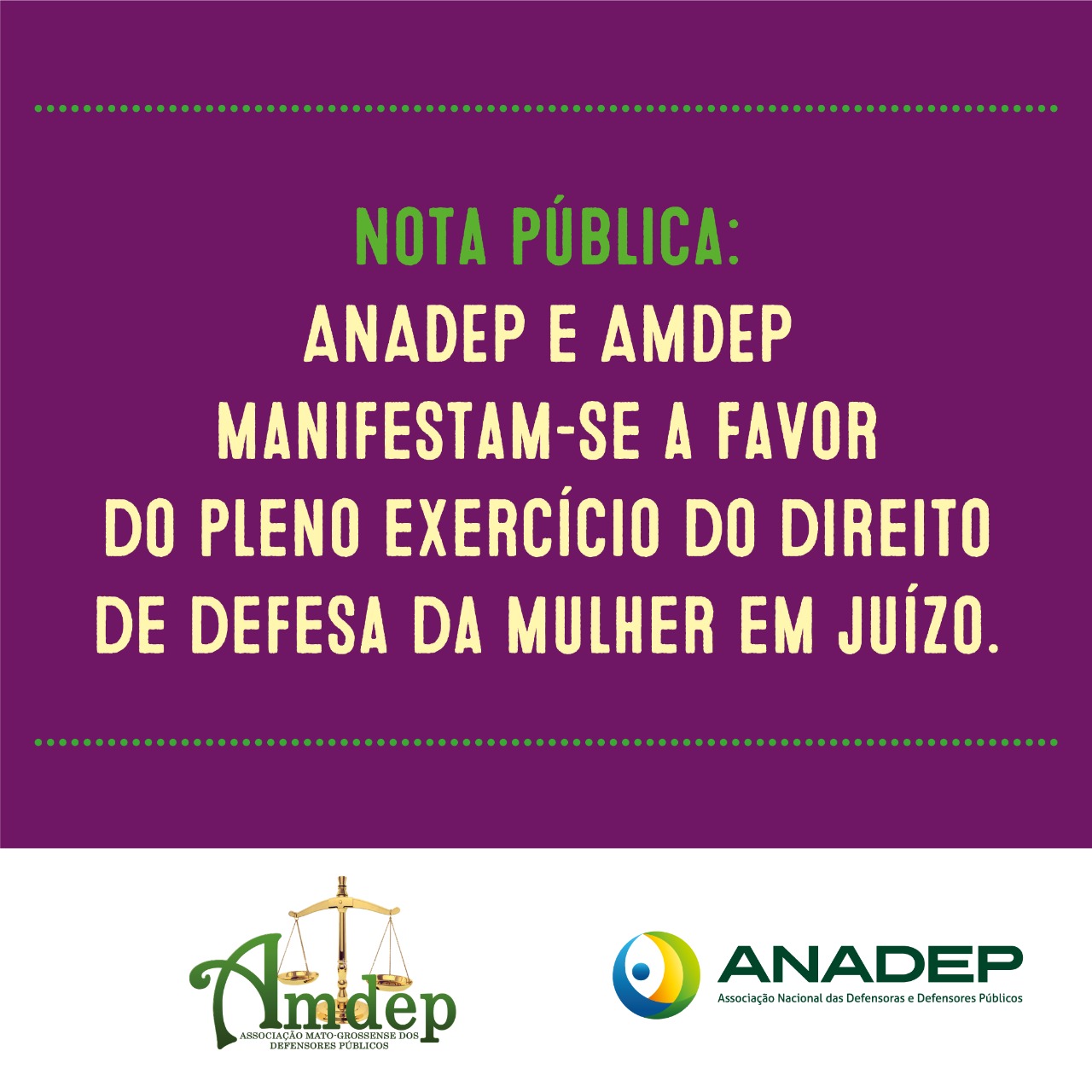 Enquanto entidades de classe salvaguardadoras dos interesses da classe defensorial que trabalha para proteção e promoção dos direitos humanos e, em especial no caso, dos direitos das mulheres, manteremos nossa firme posição de exigir respeito às prerrogativas das Defensoras e Defensores, sempre atentos ao primado da dignidade da pessoa humana e de combate de todas as formas de discriminação e opressão.