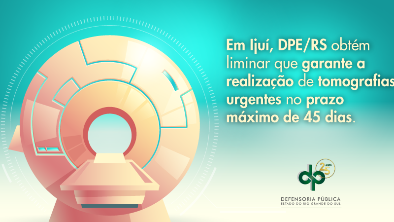 Após ingressar com uma ação civil pública devido ao atraso no agendamento de tomografias computadorizadas no Noroeste do Estado, a Defensoria Pública do Estado do Rio Grande do Sul (DPE-RS) obteve liminar que garante a realização do exame no prazo máximo de 45 dias em casos de urgência ou emergência. Deferida pela 3ª Vara Cível de Ijuí no dia 2 de setembro, a liminar vale para os pacientes da 17ª Coordenadoria Regional de Saúde (CRS).