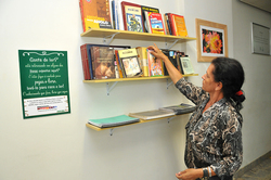 Os assistidos podem ler os livros enquanto aguardam atendimento ou levá-los para casa, devolvendo-os quando concluírem a leitura.