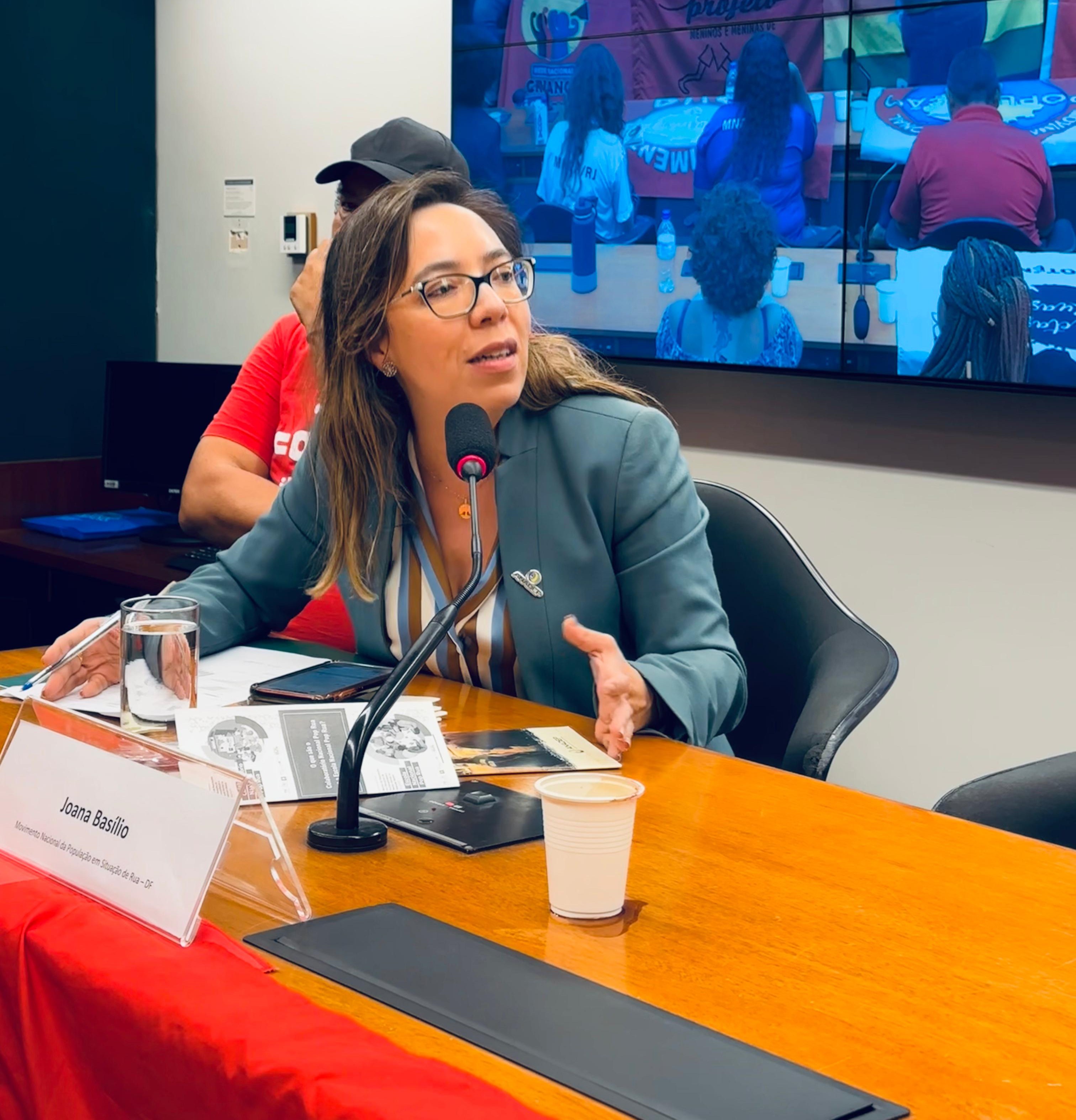 Por sua vez, a presidenta da ANADEP, Rivana Ricarte, trouxe para o debate o papel que defensoras e defensores públicos desempenham em prol da população em situação de rua em diversos estados brasileiros. Ela ressaltou ainda a importância da Campanha Nacional “Um Novo Presente é Possível: Defensoria Pública pela Superação da Situação de Rua” como um instrumento de educação em direitos para a população em geral e de ampliação da visibilidade da pauta.