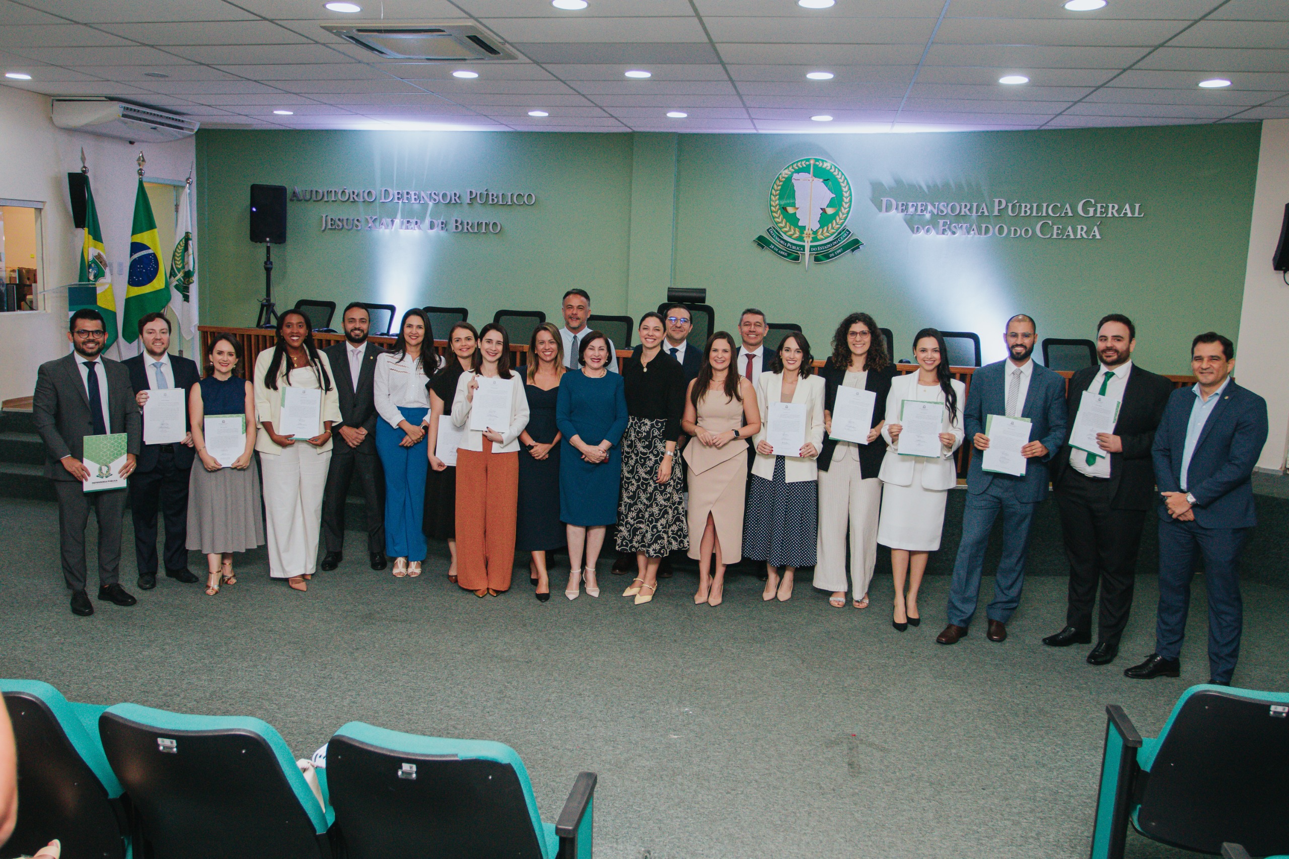 Na manhã desta segunda-feira (28/4), a Defensoria Pública Geral do Estado do Ceará (DPCE) realizou a cerimônia que marcou a entrada em exercício de 76 defensoras e defensores públicos promovidos ou removidos para as entrâncias intermediária e final. O momento, celebrado no dia do aniversário da instituição, antecede a data oficial de entrada em exercício, prevista para o dia 5 de maio.