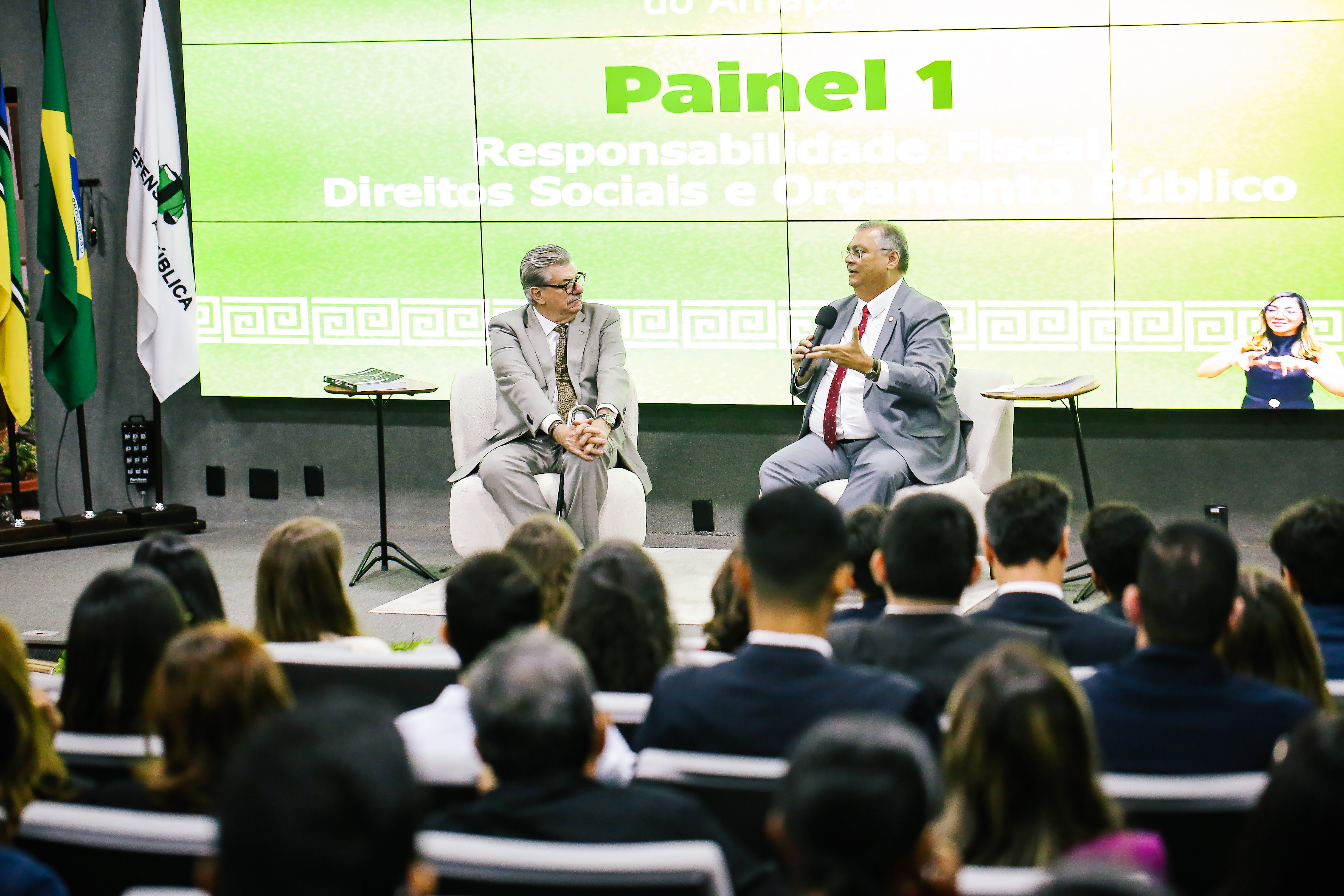 A programação foi dividida em dois painéis. O painel de abertura “Responsabilidade Fiscal, Direitos Sociais e Orçamento Público" foi conduzido pelo ministro do Supremo Tribunal Federal (STF), Flávio Dino e mediado pelo ministro do Superior Tribunal de Justiça (STJ), Marco Buzzi. Em sua explanação, Dino, debateu sobre a importância de um equilíbrio entre as finanças públicas e a garantia dos direitos sociais, enfatizando que a responsabilidade fiscal não pode ser desassociada do compromisso com a redução de desigualdades sociais.