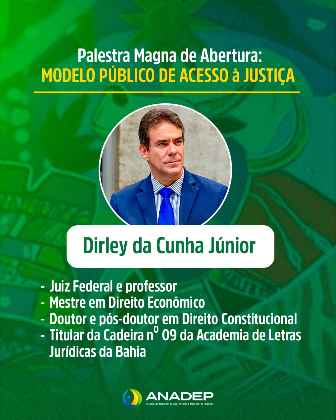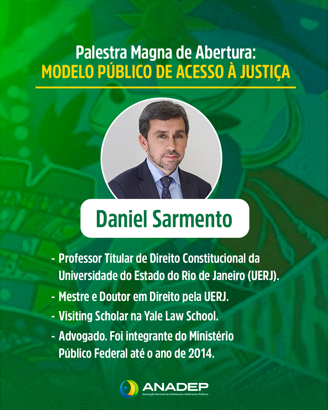 A palestra magna de abertura, no dia 6 de novembro, terá como tema “Modelo Público de Acesso à Justiça”. A solenidade contará com a participação do jurista e professor titular de Direito Constitucional da Universidade do Estado do Rio de Janeiro (UERJ), Daniel Sarmento, e do juiz federal e pós-doutor em Direito Constitucional, Dirley da Cunha.