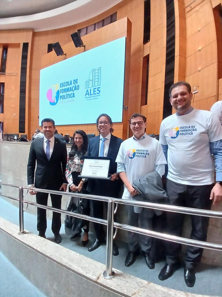 A Assembleia Legislativa do Espírito Santo sediou, nesta quinta-feira (23), a solenidade de encerramento da Escola de Formação Política para Jovens, uma iniciativa do vereador Aylton Dadalto, em parceria com a Casa dos Municípios e a Escola do Legislativo.