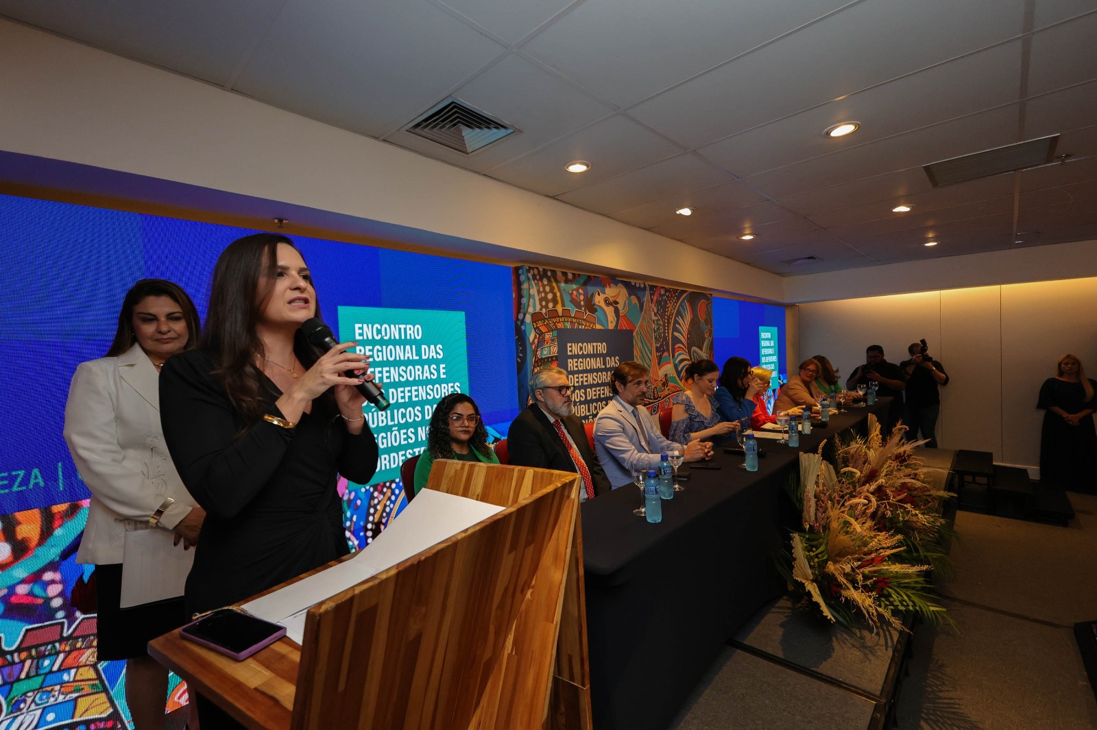 Com um discurso emocionante, Fernanda Fernandes destacou suas raízes com a cultura nordestina. “Falo aqui como presidenta da ANADEP, mas também como filha de piauienses e neta de cearenses, nascida das terras do Cariri, lugar onde meus avós aprenderam a transformar a dureza da vida em poesia. Estar hoje em Fortaleza, nessa união entre Norte e Nordeste, é regressar às minhas origens; é sentir o calor humano, o vento do mar e o pulsar de um Brasil que resiste e se reinventa todos os dias.”