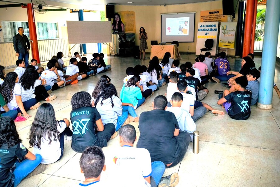 Por meio do programa "Defensoria Pública nas Escolas", a Defensoria Pública do Estado do Tocantins (DPE-TO) esteve na Escola Municipal Sávia Fernandes Jácomo, em Palmas, para conversar com estudantes sobre violência doméstica e o combate ao racismo. A atividade reuniu 74 alunos do 7º ano do Ensino Fundamental.
