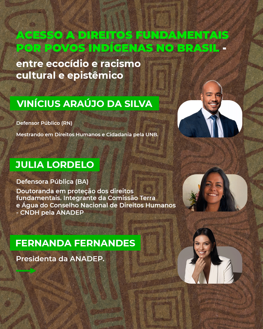 A programação está estruturada em eixos temáticos que buscarão aprofundar essa discussão, como a análise da Defensoria Pública enquanto instrumento institucional na luta pela reparação histórica — com foco em estratégias de litigância estrutural e políticas antirracistas — e o acesso a direitos fundamentais, discutido entre os conceitos de ecocídio e racismo cultural e epistêmico.