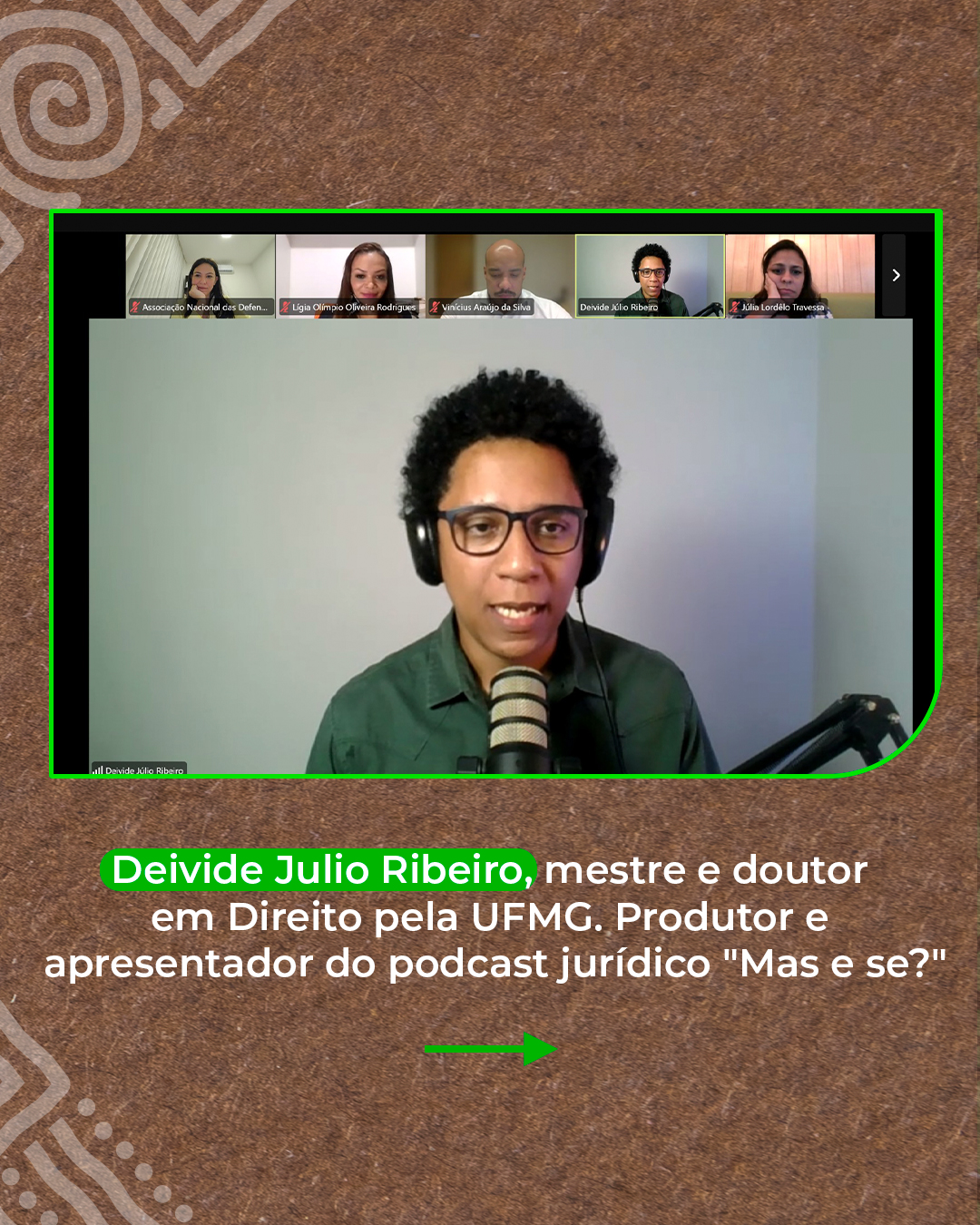 Convidado para o debate, Deivide Julio Ribeiro, mestre e doutor em Direito pela UFMG e produtor e apresentador do podcast jurídico "Mas e se?", abordou a importância de aprofundar os trabalhos do Grupo de Trabalho de Igualdade Racial da Instituição, promovendo debates e práticas antirracistas no cotidiano.