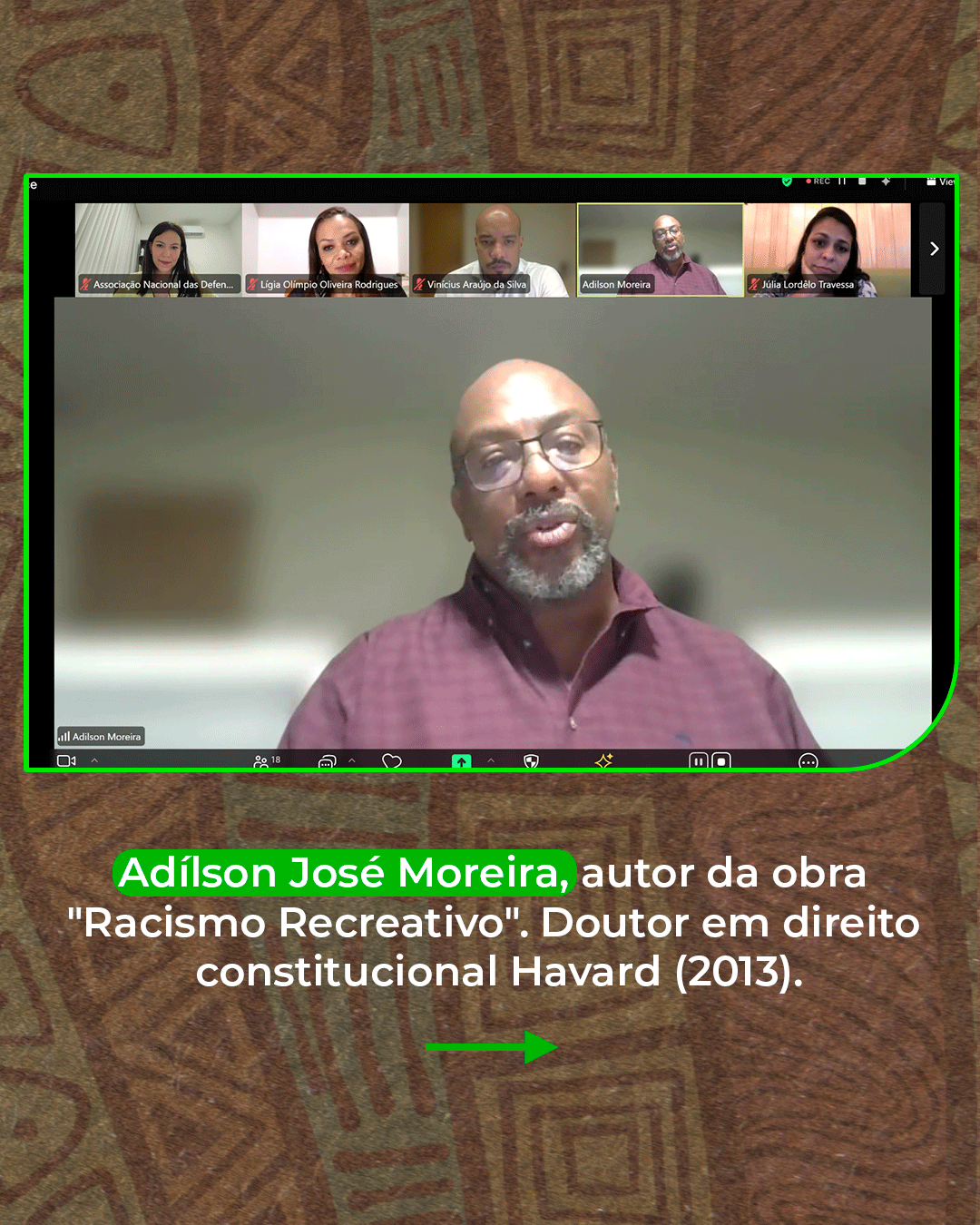O jurista e professor Adilson Moreira, autor dos livros "Racismo Recreativo" e "Letramento racial: uma proposta de reconstrução da democracia brasileira", obra que venceu o Prêmio Jabuti 2025 na categoria Educação, apresentou uma análise abrangente sobre justiça reparatória e relações raciais no Brasil, passando pelo colonialismo, pela escravidão e pela construção da ideia de democracia racial. Ele destacou que o racismo estrutural continua se manifestando por meio de mecanismos institucionais que perpetuam desigualdades.