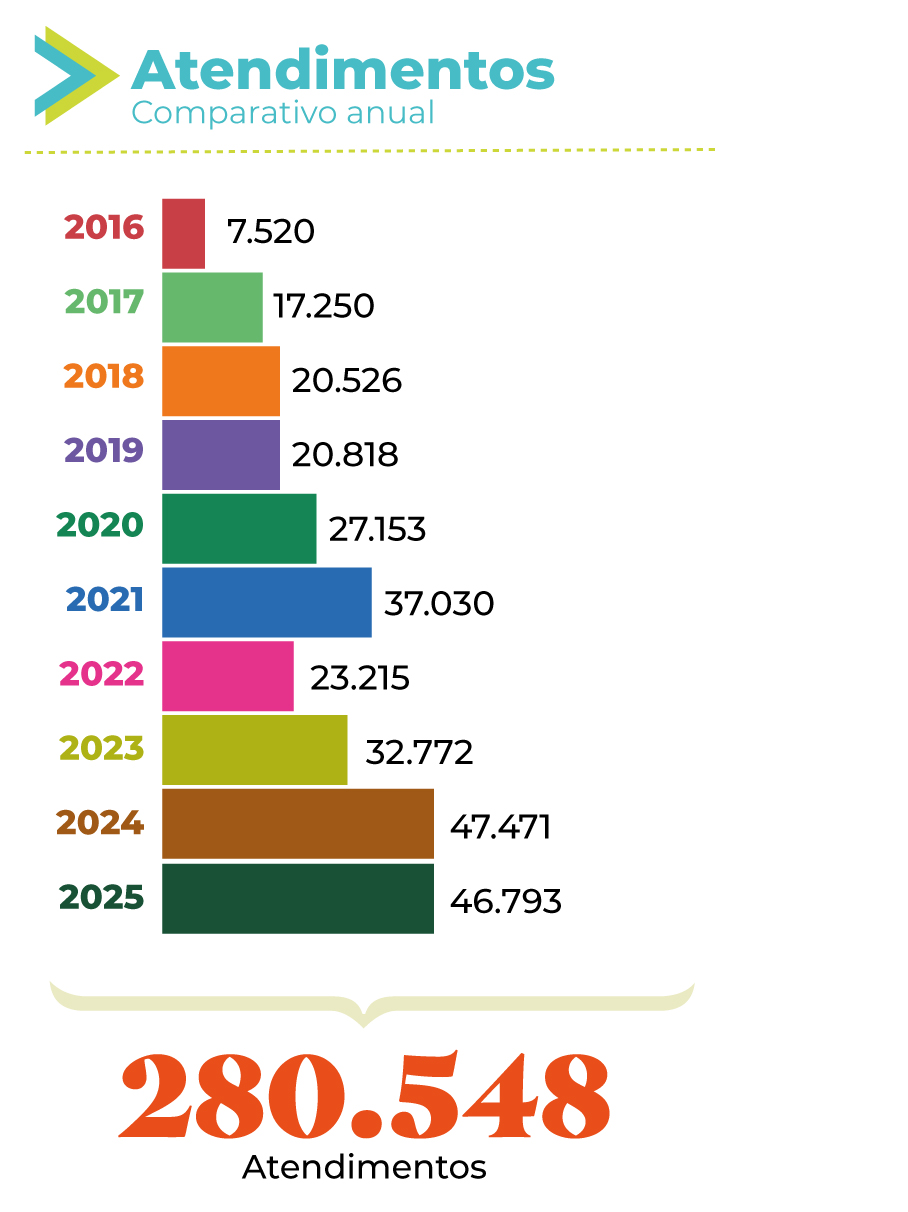 Embora os relatórios apontem crescimento constante nos atendimentos ao longo dos anos, a equipe reforça que os dados representam, sobretudo, histórias de vida. Casos de família, violência doméstica, conflitos parentais, demandas relacionadas à saúde, à moradia e à proteção de crianças, adolescentes, idosos, mulheres e populações tradicionais fazem parte da rotina do setor.