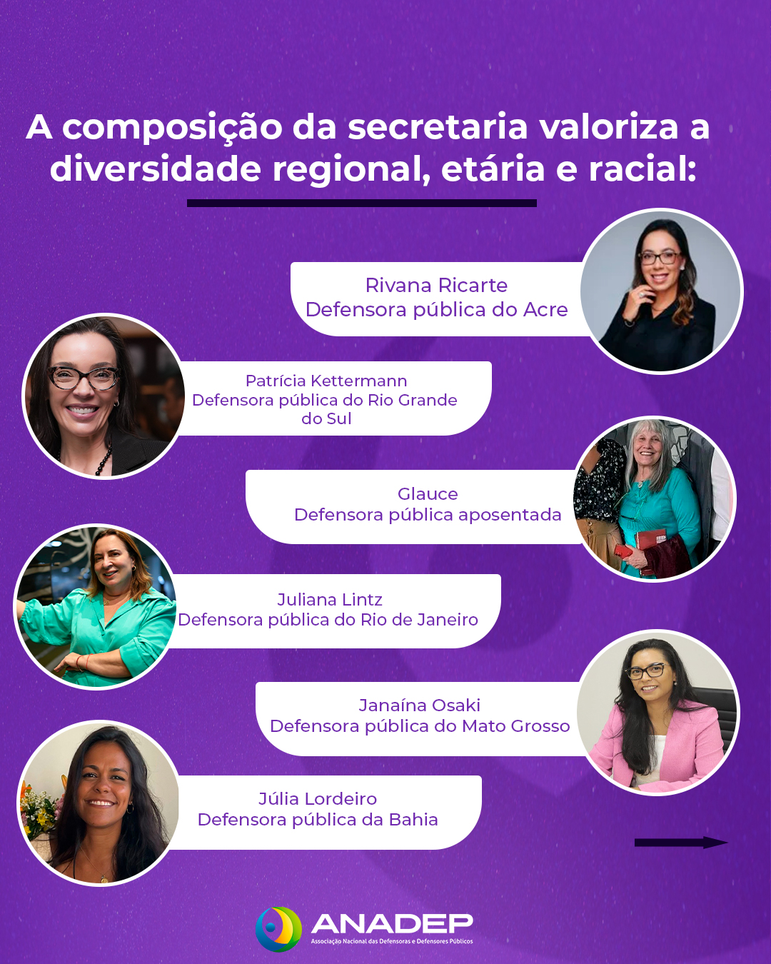 Essa representatividade também se reflete nos espaços de poder da entidade: 23 mulheres compõem a diretoria atual da ANADEP e 11 defensoras estão à frente da coordenação de comissões temáticas.