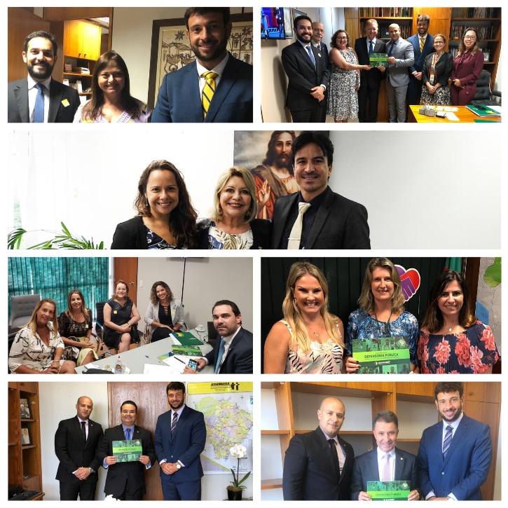 A cada encontro a Associação Nacional entregou também o relatório "Apresentando a Defensoria Pública: Retrato de uma Instituição em Desenvolvimento”. A ANADEP reuniu-se com os deputados Darci de Matos (PSD/SC), Fábio Trad (PSD/MS) Alice Portugal (PCdoB/BA), João Campos (PSD/GO), Adolfo Viana (PSDB/BA) e com a senadora Selma Arruda (PSL/MT).