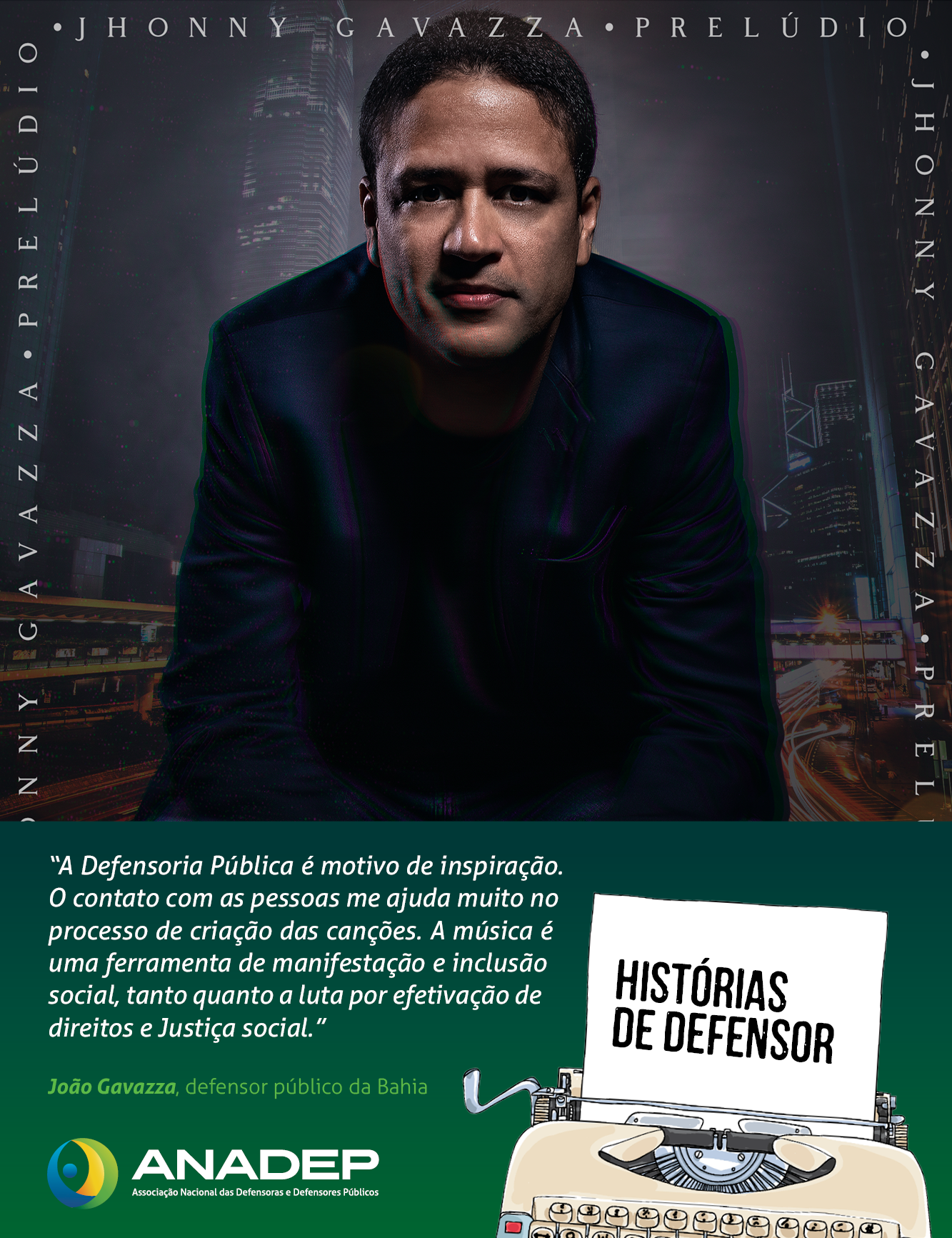 O que o diferencia no dia a dia é que o talento de Jhonny Gavazza, como é conhecido, é a música: canto, composição e produção. Jhonny lançou o álbum "Prelúdio", que contém 12 canções autorais e já está nas principais mídias sociais. Parte das composições surgiram das reflexões que "defensorar" traz: a luta por efetivação de direitos e Justiça social. Gavazza também tem inspirações pessoais para letras românticas. "Mas essas eu não vou contar (risos)", descontraiu.