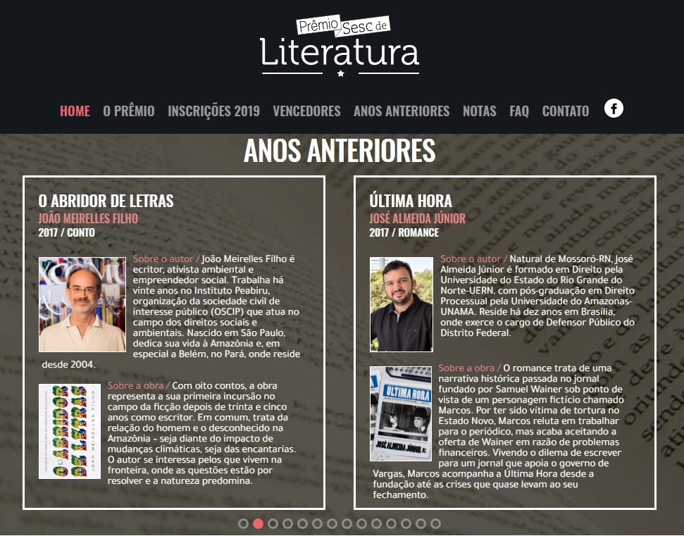 O Prêmio Sesc de Literatura é a principal premiação para autores estreantes. O ganhador é contratado por uma grande editora, que insere o autor no circuito nacional de literatura do Sesc. Então, ser ganhador do Prêmio Sesc significa começar uma carreira literária pelo andar de cima. Desde que recebi o prêmio já participei de mais de trinta eventos em todas as regiões do país. Inclusive, tive a oportunidade de fazer um circuito internacional em Portugal para falar do livro em bibliotecas, escolas e na Feira de Óbidos.