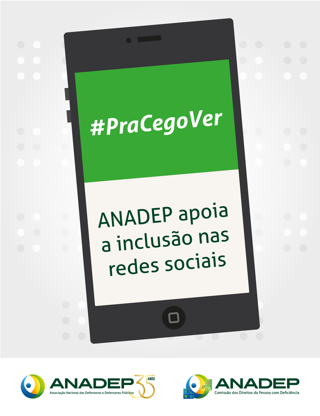 A partir deste mês, todos os conteúdos produzidos para as redes sociais (Facebook e Instagram) da ANADEP contarão com uma descrição de imagens através do recurso #PraCegoVer. A iniciativa consiste em uma audiodescrição, ou seja, um legenda a ser lida para uma pessoa cega, de forma que esta saiba o que contém na imagem. O objetivo é proporcionar acessibilidade às pessoas cegas e contribuir para que a rede social fique mais acolhedora e acessível para todas e todos.