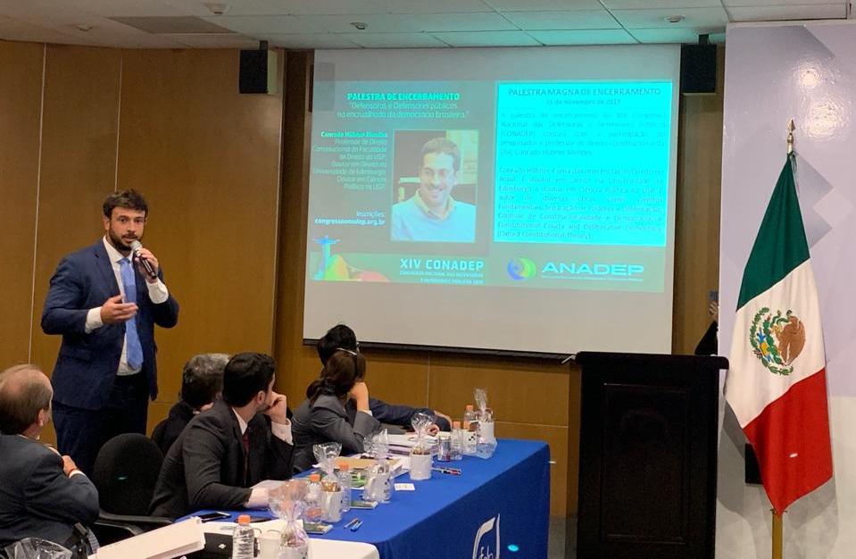 Durante a reunião do Conselho Executivo da AIDEF, o presidente da ANADEP, Pedro Coelho, fez a apresentação e o convite para o XIV Congresso Nacional das Defensoras e Defensores Públicos, que acontecerá de 12 a 15 de novembro no Rio de Janeiro.