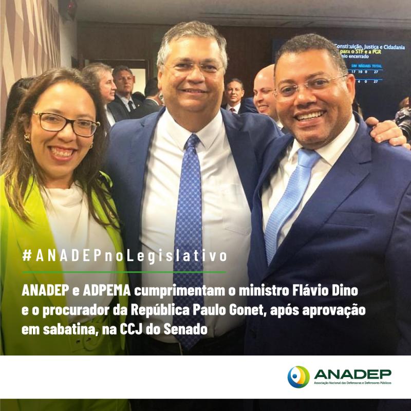 ANADEP e ADPEMA cumprimentam o ministro Flávio Dino e o procurador da República Paulo Gonet, após aprovação em sabatina, na CCJ do Senado